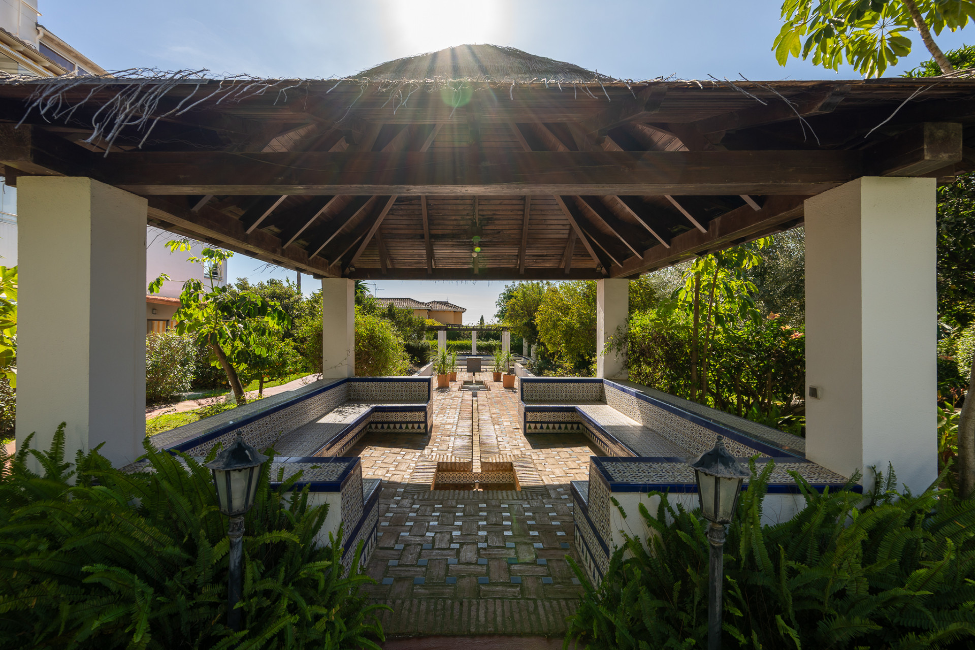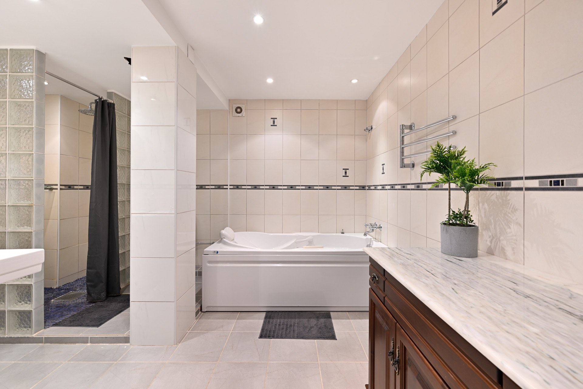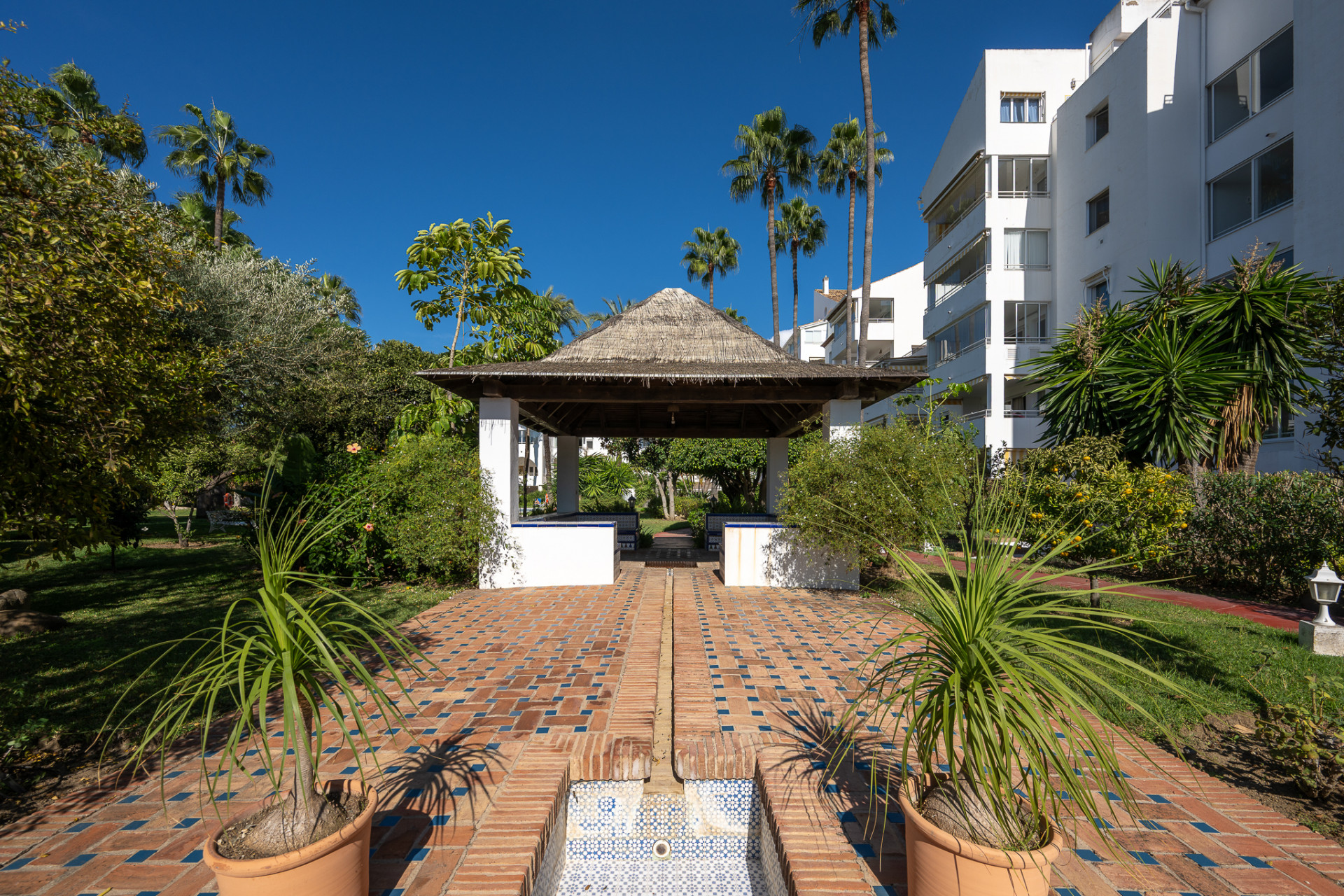 Boligen er en del av et inngjerdet og eksklusivt boligkompleks med døgnkontinuerlig sikkerhetstjeneste, video- og sikkerhetsinngang, overvåkningskameraer og dørvakt. Fellesfasilitetene inkluderer et velholdt svømmebasseng og en frodig hage, hvor beboerne kan nyte et avslappende miljø. Det er også heis i bygget, noe som gir enkel tilgang til leiligheten, samt privat garasje for trygg parkering.