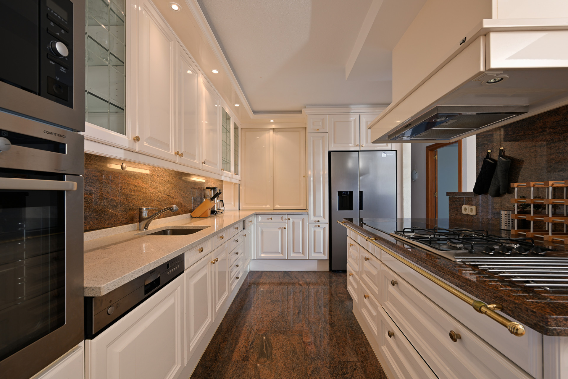 Eiendommen er en del av et inngjerdet og sikkert boligområde med 24-timers vakthold, video- og sikkerhetsinngang samt overvåkningskameraer. Fellesfasiliteter inkluderer et oppvarmet svømmebasseng, velstelt hage, treningsstudio, badstue og en resepsjon med dørvakt. For de som setter pris på komfort, har leiligheten både heis og privat garasje, og det er tillatt med kjæledyr. Boligen har også individuelle klimaanlegg i hvert rom, noe som sikrer et behagelig inneklima hele året.