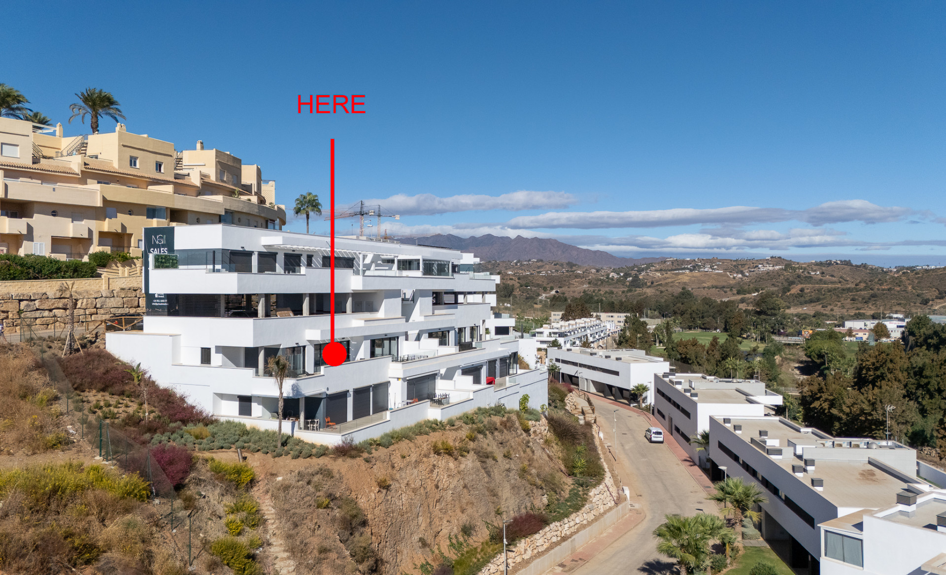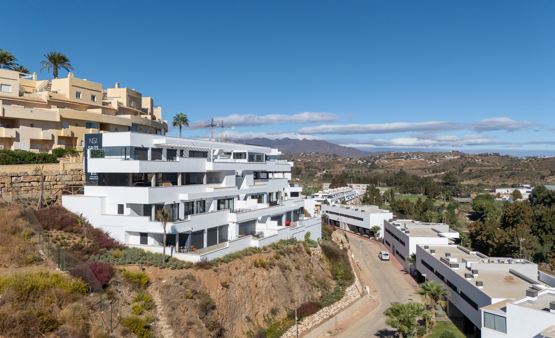 Leiligheten ligger i første etasje i blokk 1 på Navigolf Suites og har fri utsikt over La Cala de Mijas, La Noria Golf og havet.