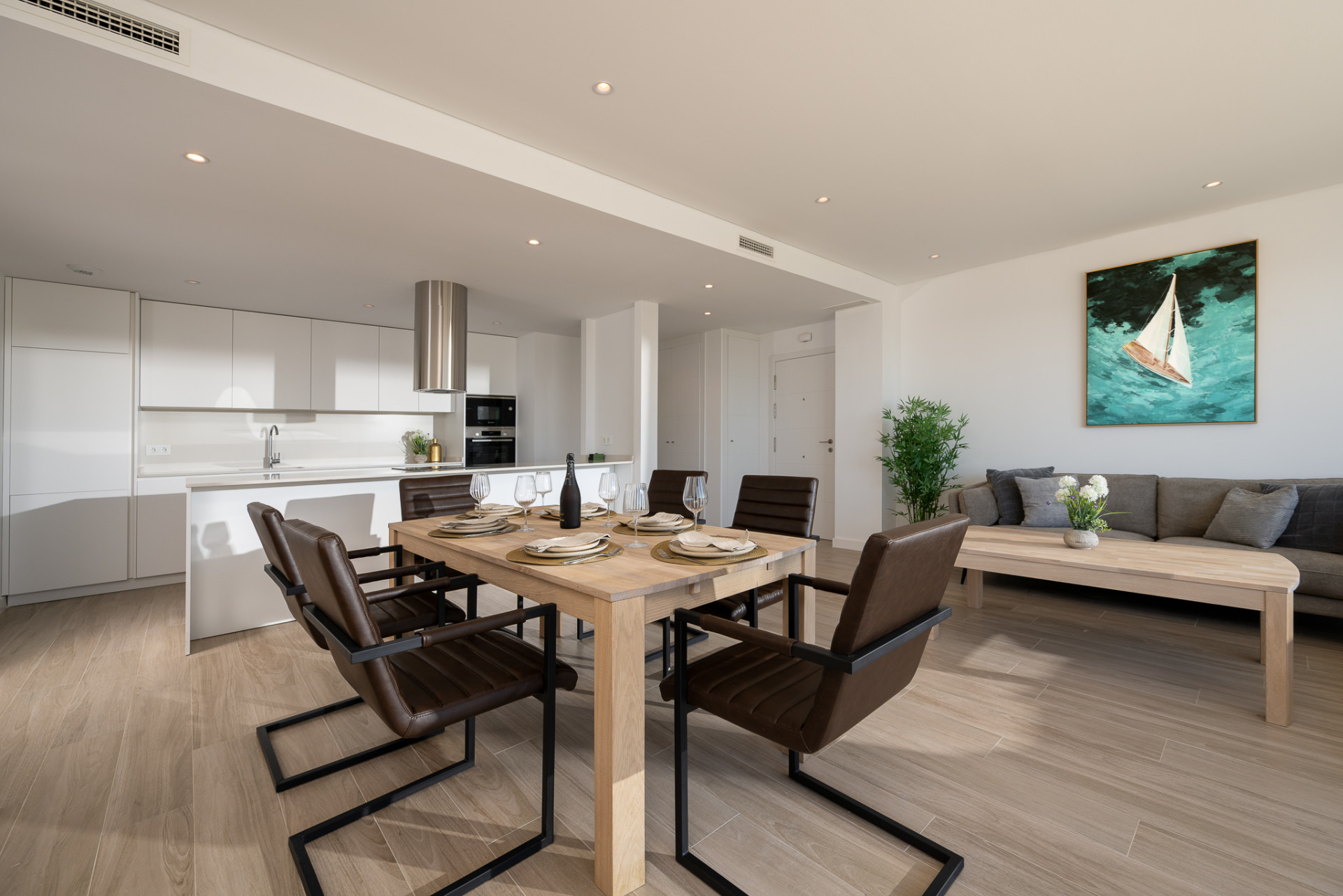 Denne leiligheten kombinerer plass, komfort og en helt fantastisk beliggenhet. Med 156 m² bebygd areal og en sørøstvendt terrasse på 82 m² får du både romslige innendørsarealer og en utendørsplass perfekt for morgensol og tidlig ettermiddagssol over Middelhavet.