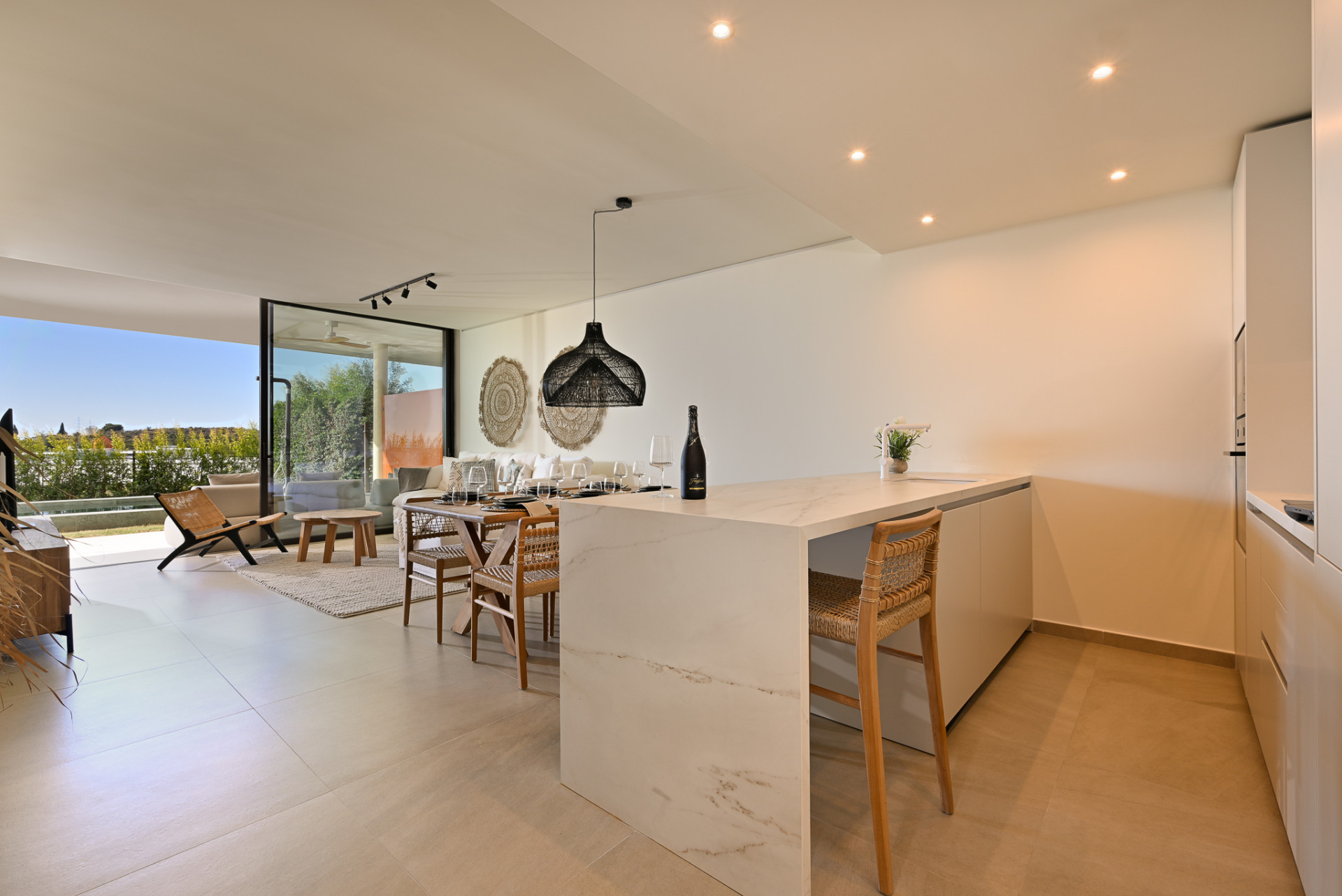 Vakker 2-roms, 2-baderom møblert leilighet ligger i den prestisjetunge Valley Collection, Higuerón. Dette moderne hjemmet tilbyr fantastisk havutsikt, privat hage og basseng, og sørvestlig orientering – perfekt for å nyte solen selv om vinteren.