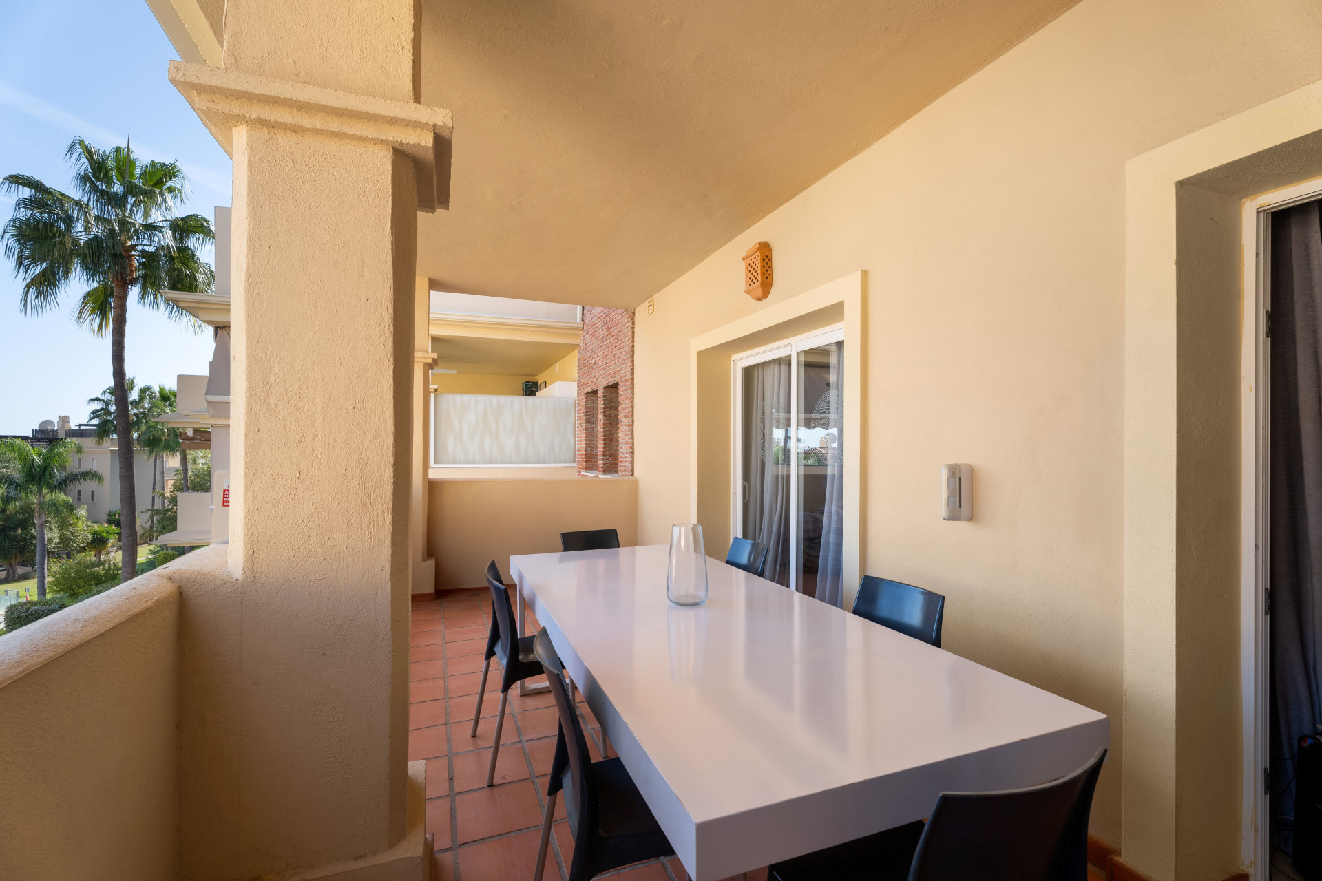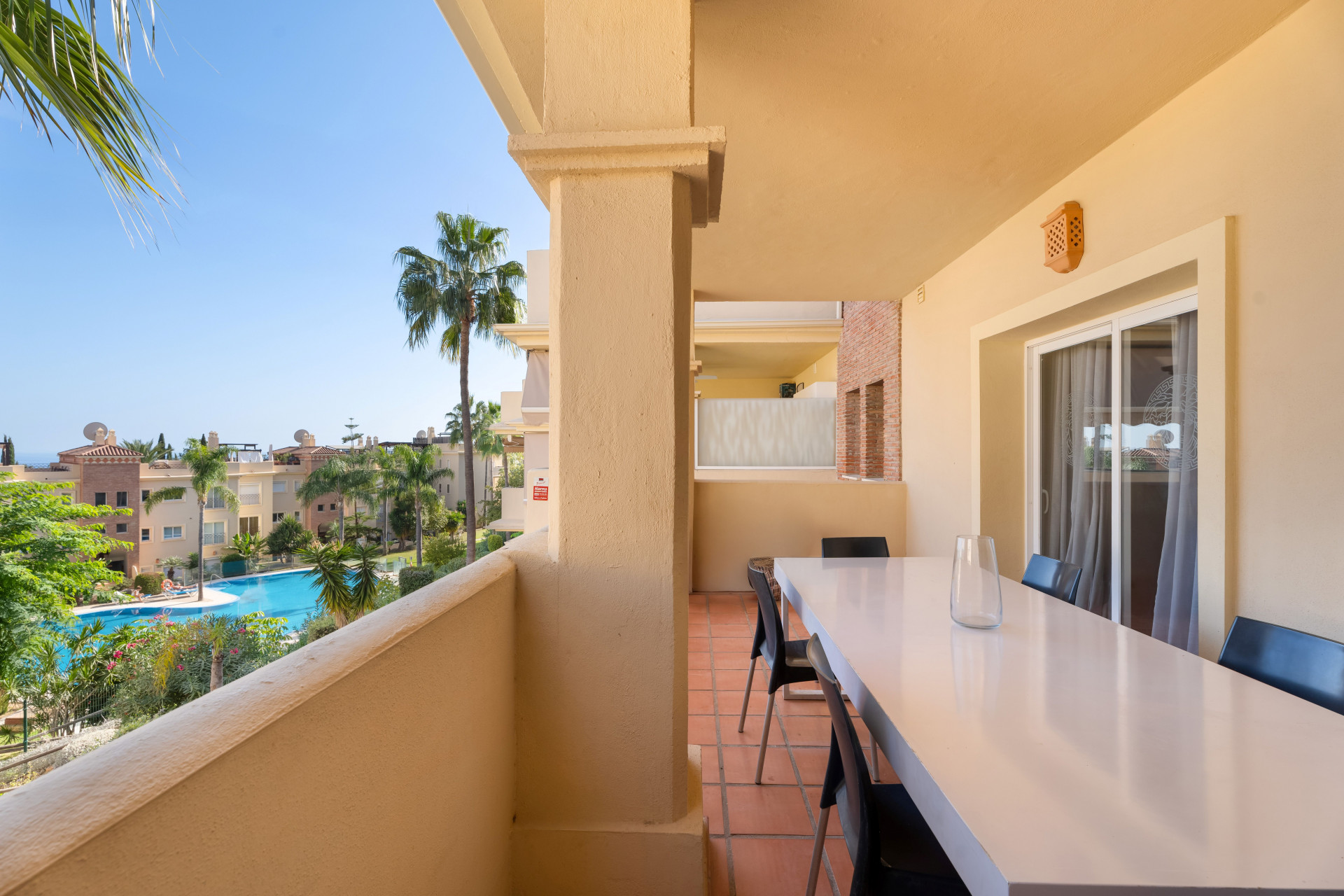 Begge gjesterommene har tilgang til en øst-vendt terrasse med utsikt over svømmebassenget, slik at eiendommen kan nyte naturlig lys hele dagen med sin dual øst og vestorientering. Med 3 golfbaner i topp rekkevidde, 5-stjerners Villa Padierna Hotel, og butikker kun en 3 minutters kjøretur unna, og stranden bare 5 minutter med bil, gir denne leiligheten en ideell beliggenhet. Puerto Banús og Estepona ligger omtrent 12 minutter unna.