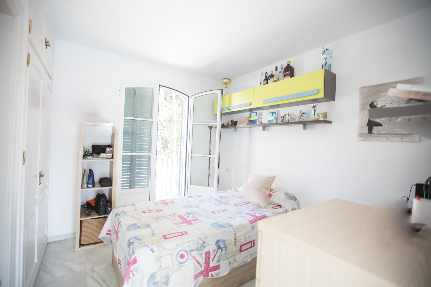 Fantastic property in the highly sought-after area of El Capricho (Nagüeles Bajo), close to the beach, Marbella center, services, transport, schools, pharmacies, and supermarkets. The house is part of a community of 14 homes with communal parking and also includes a private underground garage, which features a 80 m² basement with an equipped gym, atelier with office, and a room that was used as a hair salon, which can be adapted for any use.
