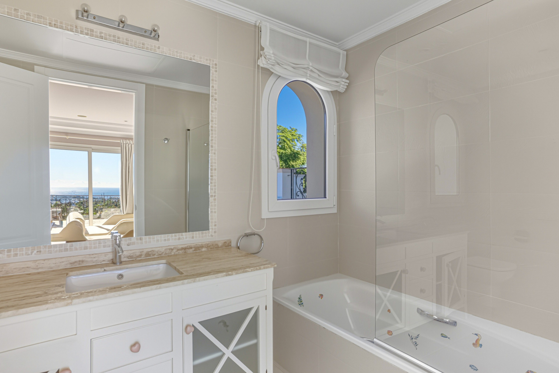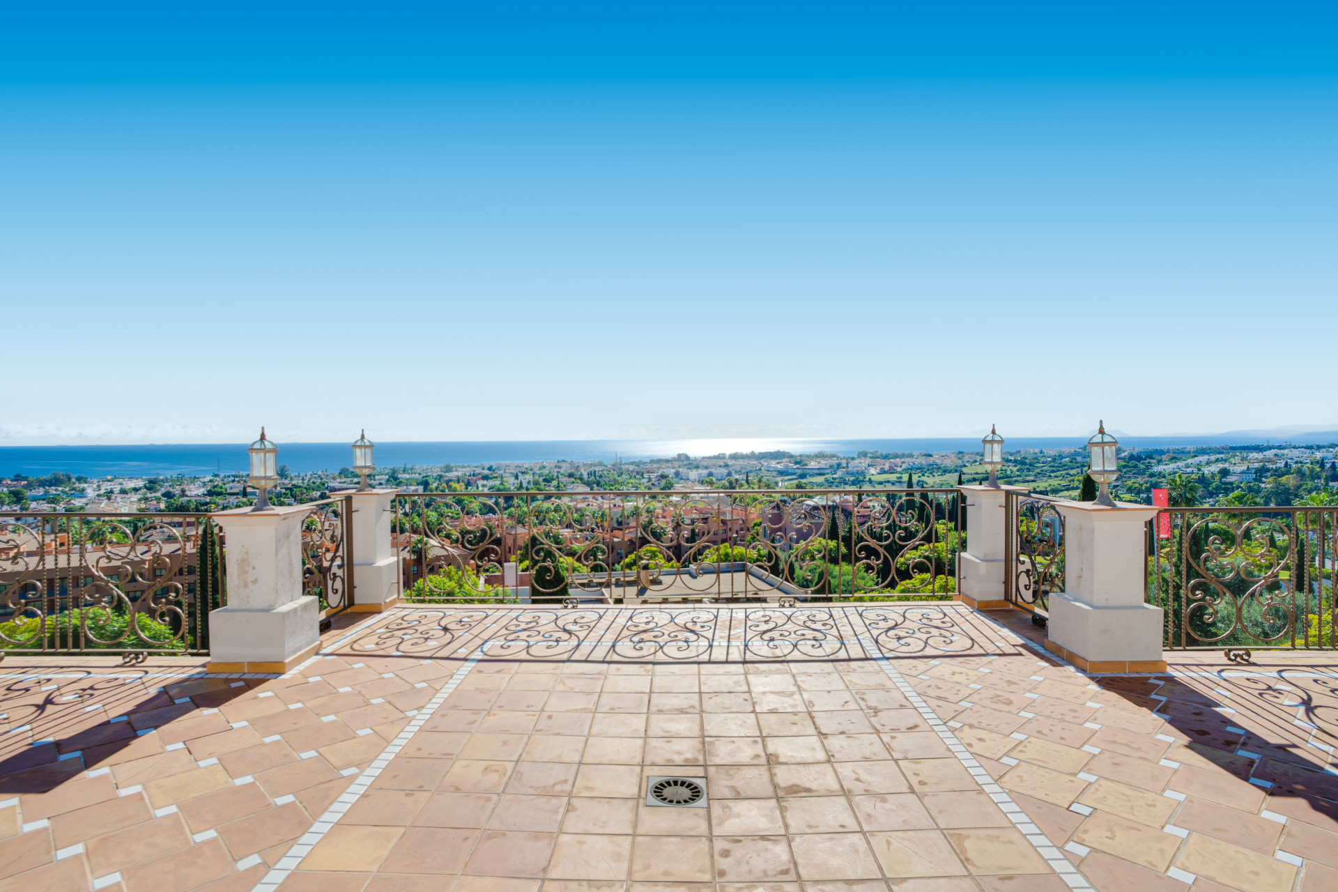 Exceptional eight-bedroom, south-facing villa located in the prestigious gated community of Los Flamingos, Benahavis, offering 24-hour security, a private garden, and a private pool, all within close proximity to amenities. Spanning four impressive levels, including a vast solarium with breathtaking panoramic sea views, this remarkable residence welcomes you with a grand entrance showcasing spectacular views. The villa features two elegant living rooms, a large kitchen with utility room, triple garage, and lift connecting all floors. The master suite boasts his and hers bathrooms and walk-in closets, while all three bedrooms on the first floor enjoy direct access to a spacious terrace overlooking the sea. Each bedroom is en suite, complemented by three additional guest toilets. The versatile lower level offers immense potential, with numerous adaptable rooms and independent access from the garage, making it ideal for creating a self-contained apartment. This extraordinary property offers a perfect blend of luxury, space, and endless possibilities.